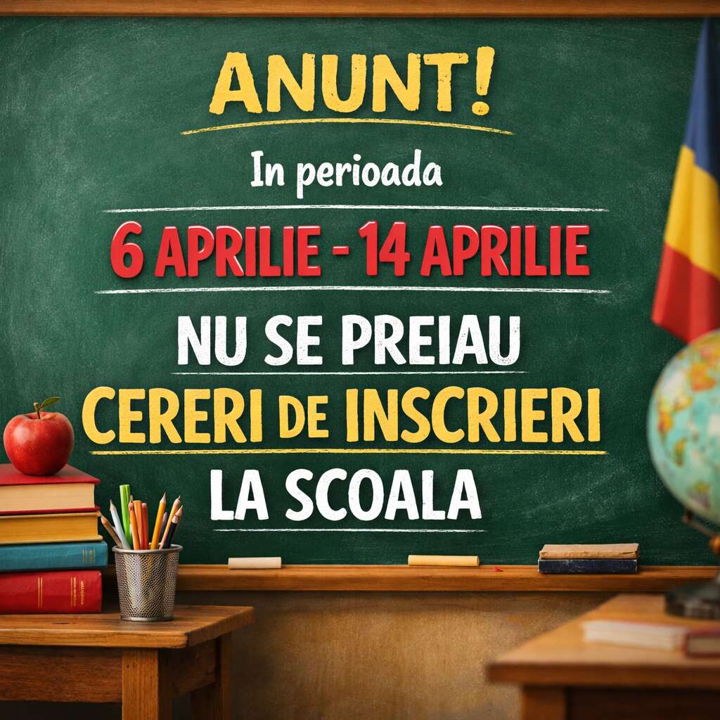 31 martie-6 mai 2026 – Completarea cererilor-tip de înscriere de către părinți/tutori legal instituiți/reprezentanți legali şi validarea acestora.