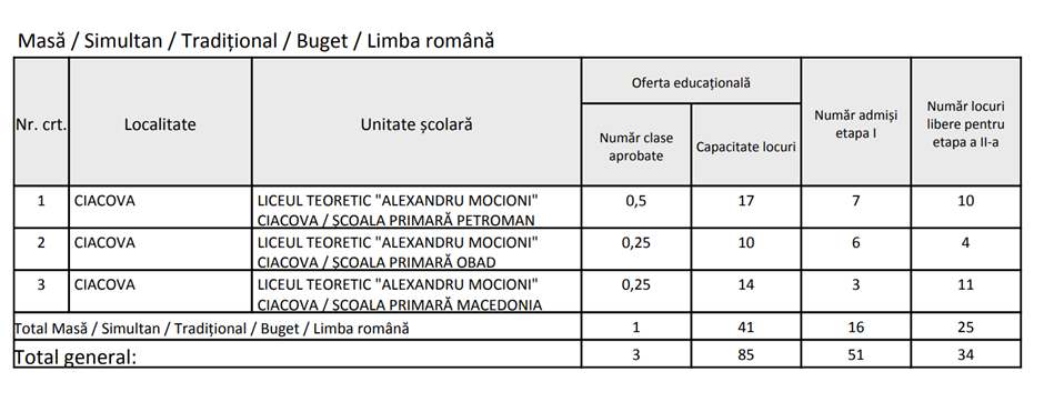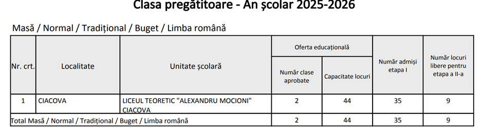 LOCURI RĂMASE LIBERE CLASA PREGĂTITOARE